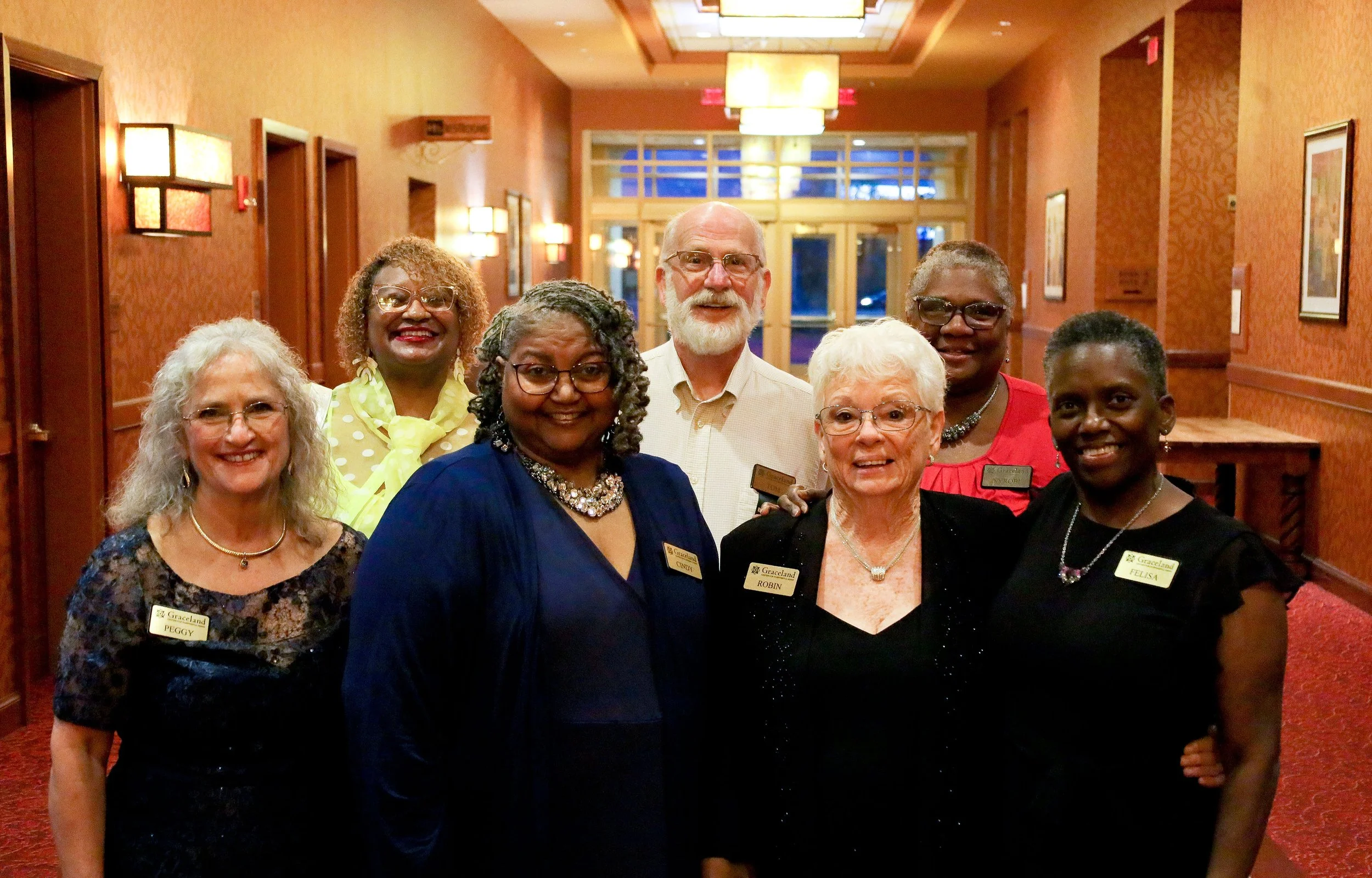 Peals of laughter, clinking glasses, and hearty conversations were to be had at the Graceland Center for Purposeful Aging’s Inaugural Gala at the Embassy Suites July 12, 2025! A sold-out crowd of 180 supporters gathered to celebrate our past accomplishments, our present successes and support our future growth! Participants browsed the wide array of silent auction baskets, enjoyed delicious food and drink, caught up with old friends and made new ones. Graceland Center for Purposeful Aging’s mission to enhance the lives of older adults in Peoria was alive and thriving at the gala! It was a magical evening of accomplishment with hope for the future.